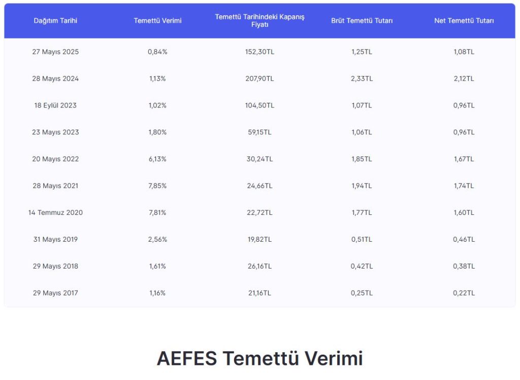 AEFES, temettü yatırımcıları için geleneksel bir tercih olsa da verimlilik oranlarında yıllar içinde bir değişim gözleniyor: